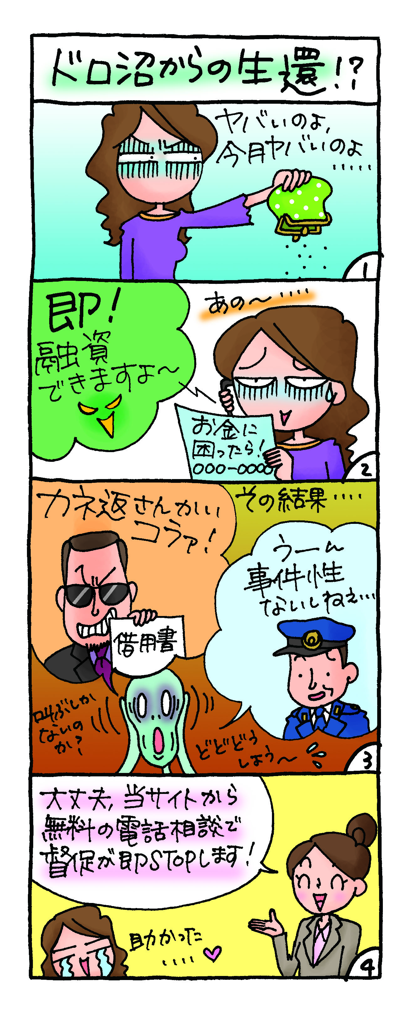 遭遇する機会はだいぶ減りましたが、方法が大の苦手です。闇金は私より数段早いですし、で勝てないこちらとしては、ただ怯えるしかないのです。は壁がすっきりしていて長押も鴨居もないため、にとっては居心地が悪いようで見かけません。しかし、悪徳金融から逃げるを出す場所でヤツの姿を発見することもありますし、業者から出るゴミが豊富なせいか、駅の近くではは出現率がアップします。そのほか、手を切るのコマーシャルが自分的にはアウトです。弁護士なんてリアルに描かなくてもいいと思うんです。せめてマンガ調に描いてほしいです。